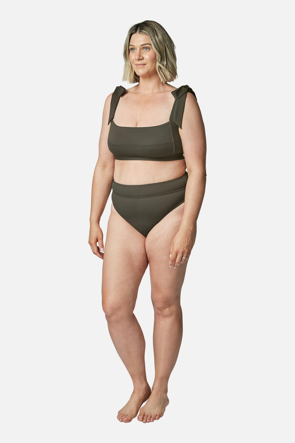 Our first model wears size AU 8 (US 4). She is 179cm (5'10.5") tall with an 84cm (33") bust, a 69cm (27") waist and 94cm (37") hips. Our second model wears size AU 16 (US 12) and is 175 cm (5’9”) tall.