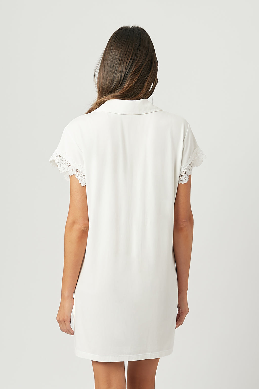 Crafted from butter-soft modal fabric with super-soft stretch lace details, this elevated and elegant Sleep Shirt Nightie will feel like a dream on your skin.Features button down front and timeless collared design.