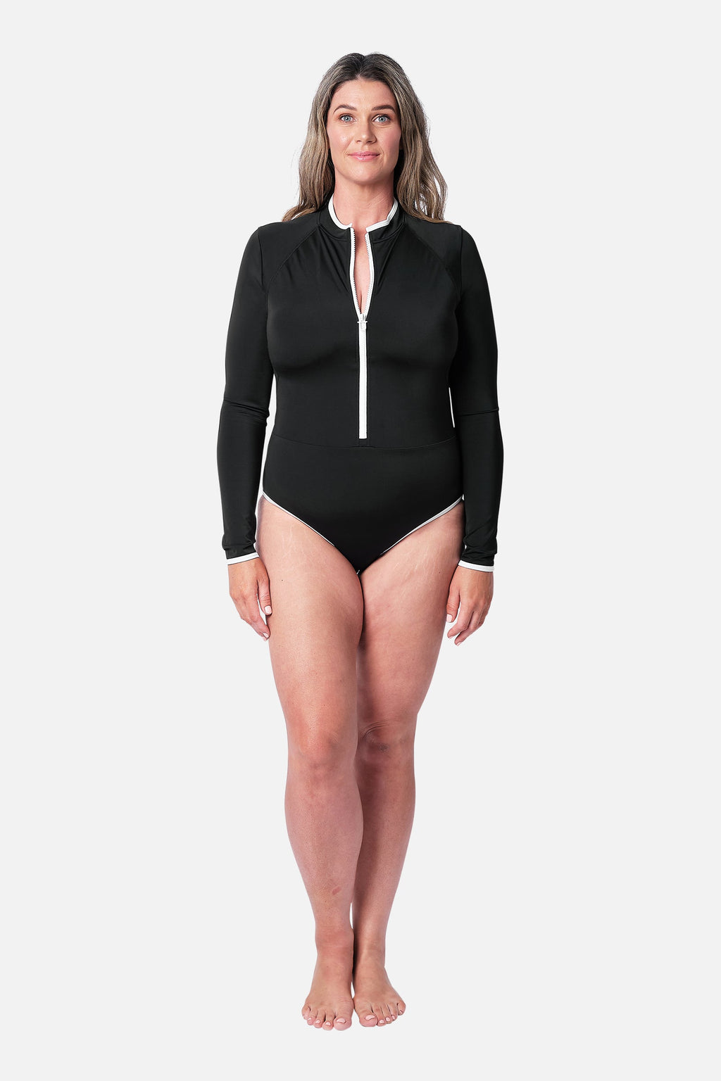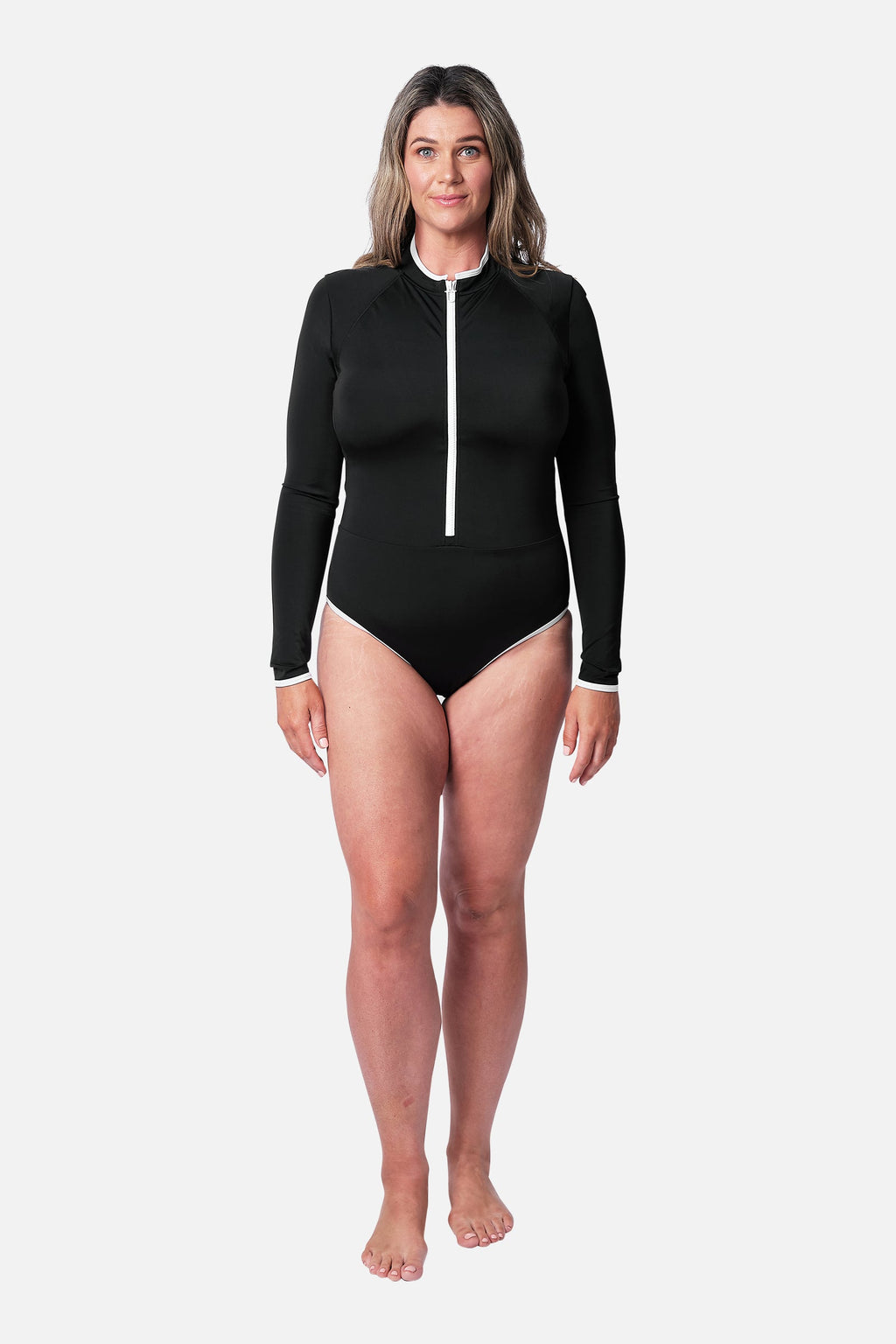 Find size measurements and international size conversions at unepiece.com/sizing.