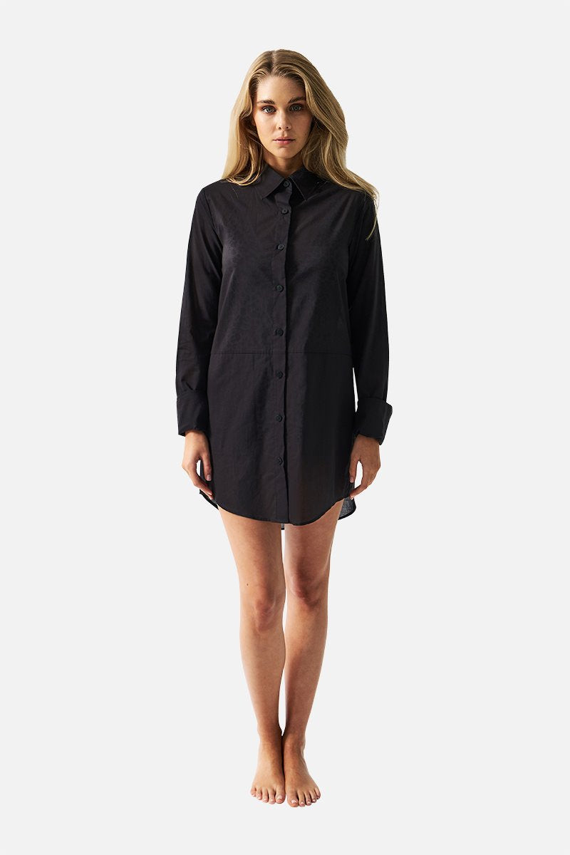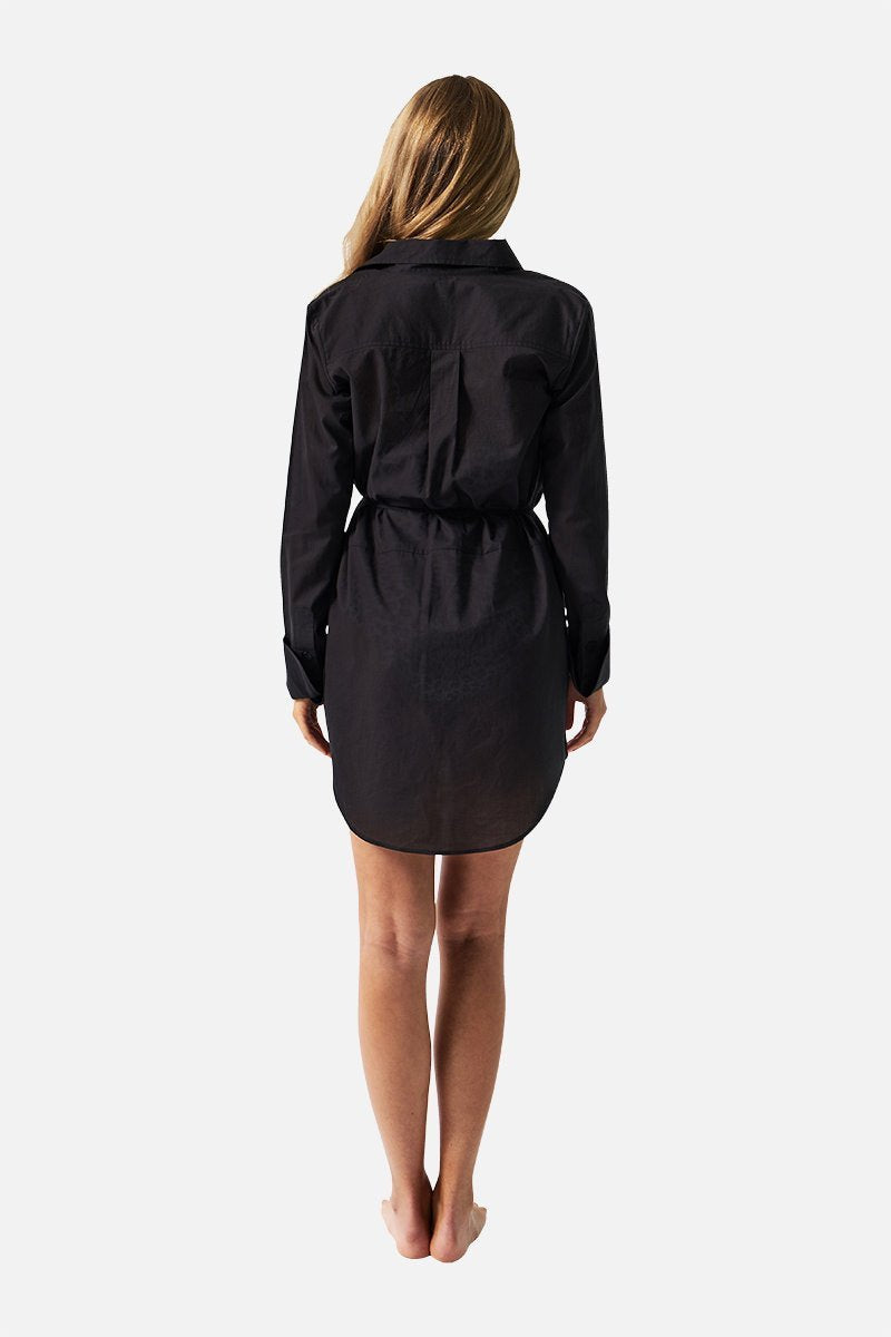 This tailored beach shirt dress can be worn open or buttoned over your favourite one piece and bikini separates for a relaxed look by the water.