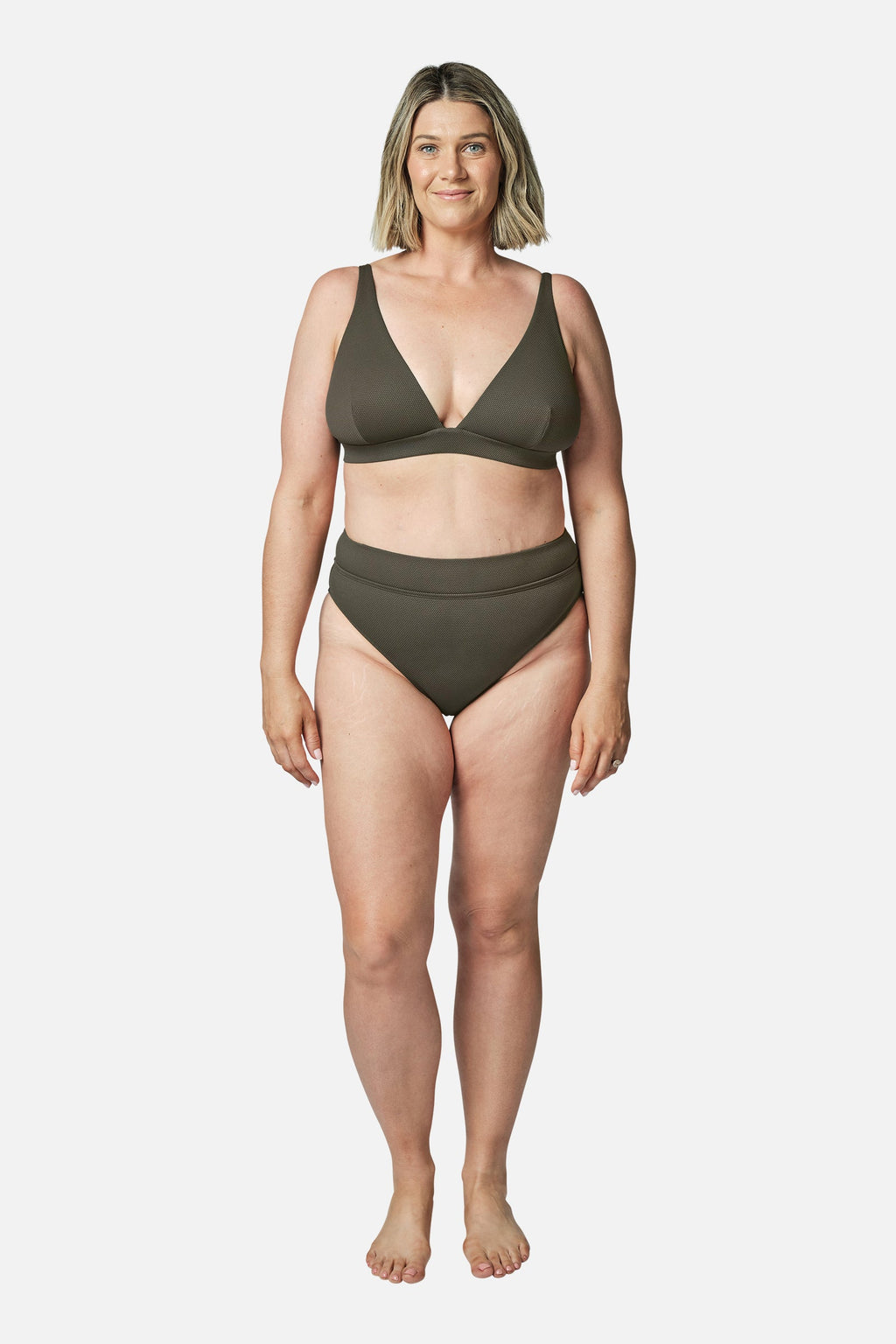 Our model wears size AU 8. She is 179cm (5'10.5") tall with an 84cm (33") bust, a 69cm (27") waist and 94cm (37") hips. Our second model wears size AU 16 (US 12) and is 175 cm (5’9”) tall.